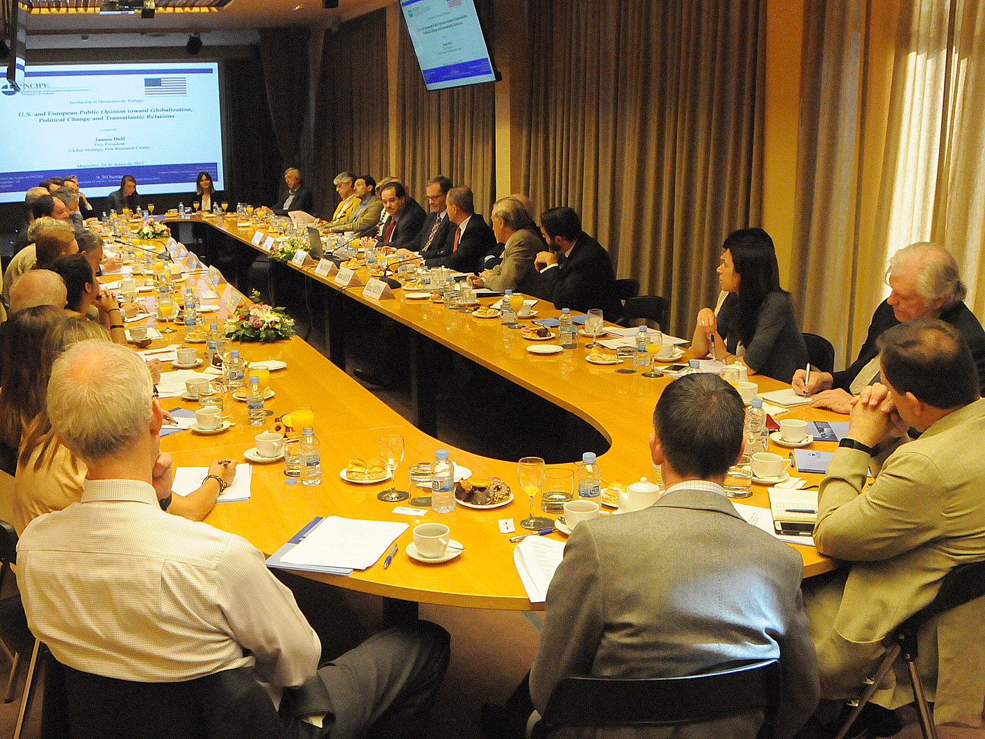 El encuentro tuvo como tema principal el análisis de la opinión pública de Estados Unidos y la Unión Europea sobre temas de gran relevancia como los efectos de la globalización o los cambios políticos que se están producido en el mundo actual.
