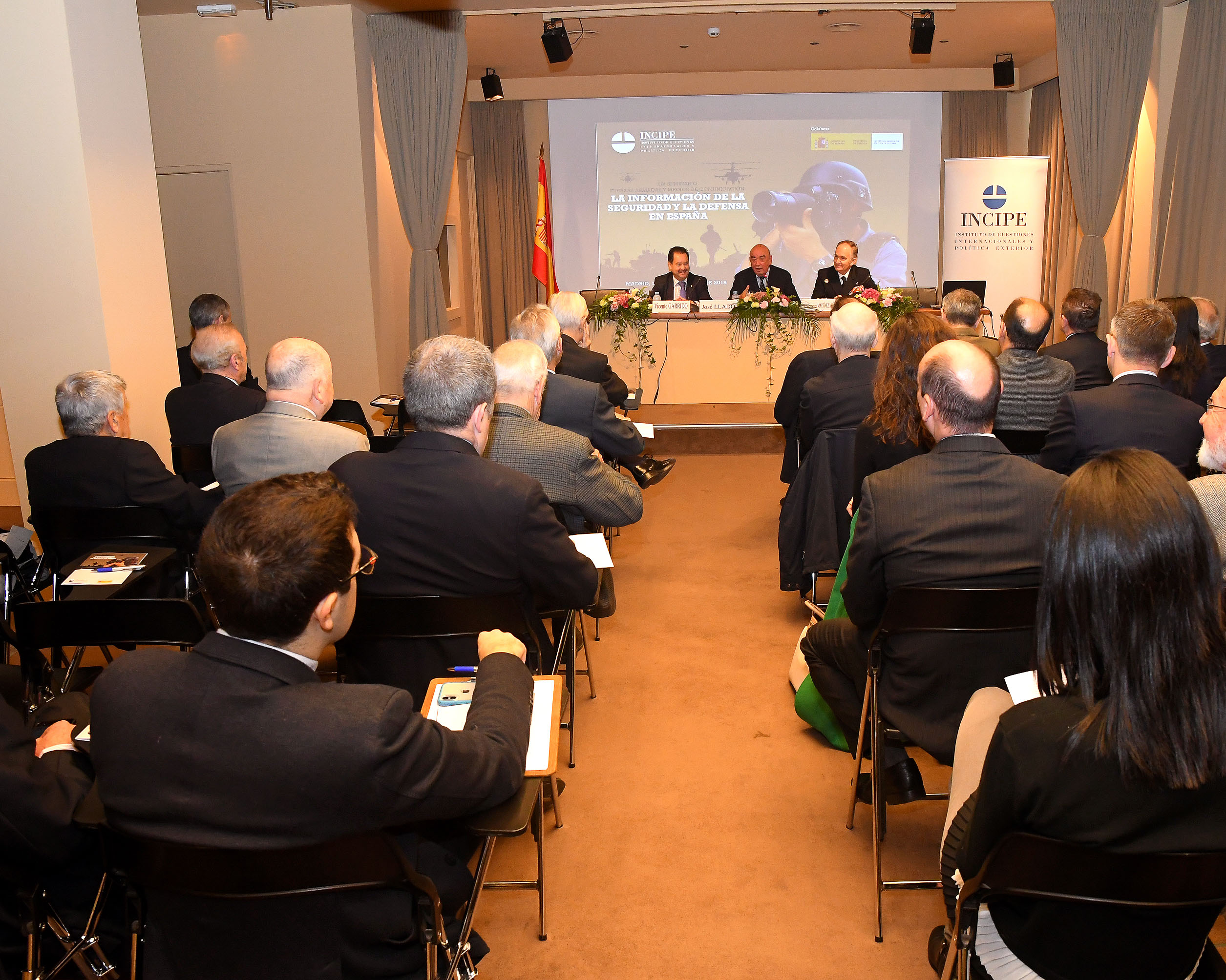 La segunda Mesa Redonda, bajo el nombre Información y desinformación: incidencia en la seguridad, fue moderada por el Coronel D. José Luis Calvo, Director de la División de Coordinación y Estudios de Seguridad y Defensa, del Ministerio de Defensa. Para debatir este panel, se contó con la participación de D. Rafael Calduch, miembro del Patronato de INCIPE y Catedrático de Relaciones Internacionales de la UCM, Dña. Pilar Requena, Periodista de TVE, programa “En Portada” y Profesora de Relaciones Internacionales en la IE University, D. Ignacio Prieto, Coronel del Ejército del Aire (r.) y parte de la Asociación de Ex Miembros del Servicio de Inteligencia Español (AEMSIE), y D. Emilio Andreu, Corresponsal de los Servicios Informativos de RNE para asuntos de Defensa y Presidente de la Asociación de Periodistas de Defensa.
