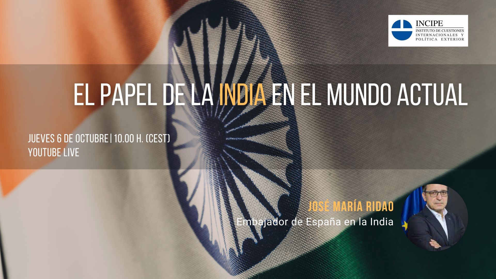 Ambassador José María Ridao began his presentation with a brief reflection on the complexity of India, understood as a vast array of phenomena and realities, not as irrationalism. To approach the country, Ridao emphasizes the importance of understanding the persistence of colonial traces, both the exploitation of resources and, especially, the European ideological worldview.