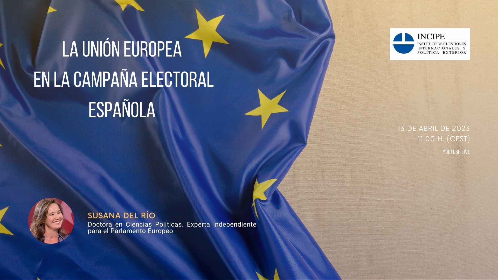 On April 13, 2023, INCIPE held the virtual event titled The European Union in the Spanish Electoral Campaign. The session featured the participation of Susana del Río, PhD in Political Science and Sociology, member of the European Academy of Sciences and Arts (AECYA), and independent expert for the European Parliament. The event was introduced by Ambassador and INCIPE Secretary-General, Manuel Alabart. Following the presentation, a Q&A session was moderated by Vicente Garrido, Director of INCIPE.