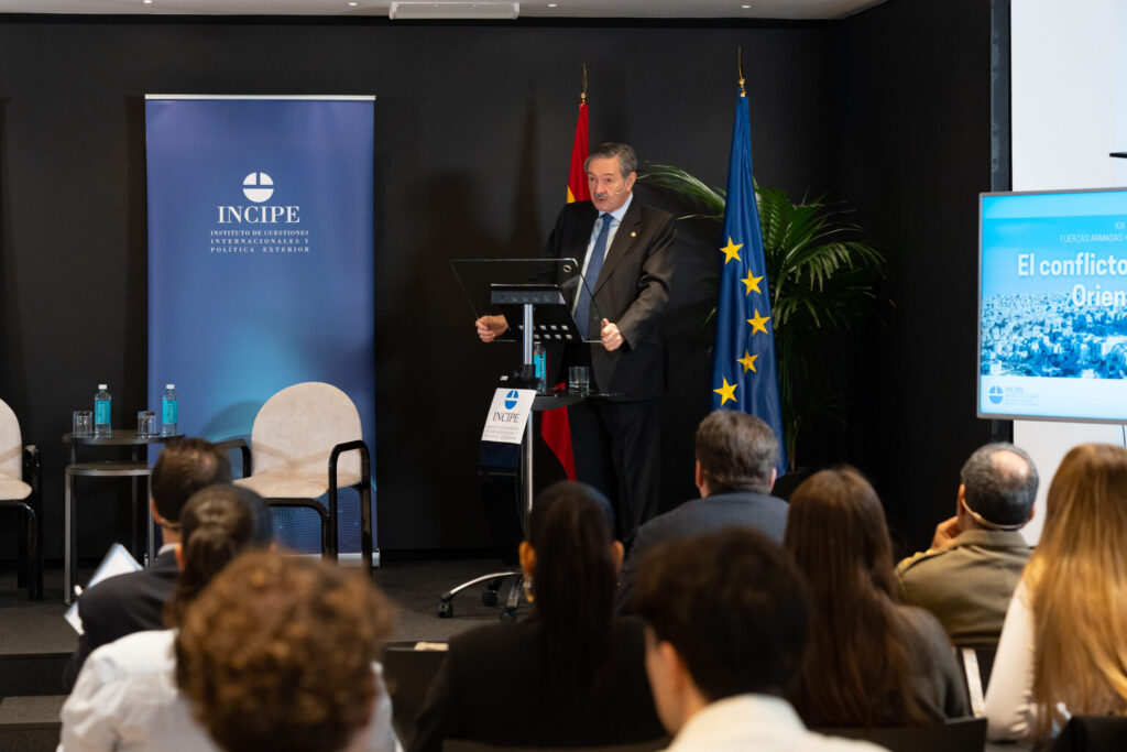 Ricardo Díez-Hochleitner, Secretary General of INCIPE, emphasized the need to strengthen the culture of defense in the context of rising global conflict, which demands reinforced national and collective security mechanisms. With large-scale and nearby conflicts such as those in Ukraine and the Middle East, it becomes essential to consolidate the relationship between security, the role of the armed forces, and media coverage.