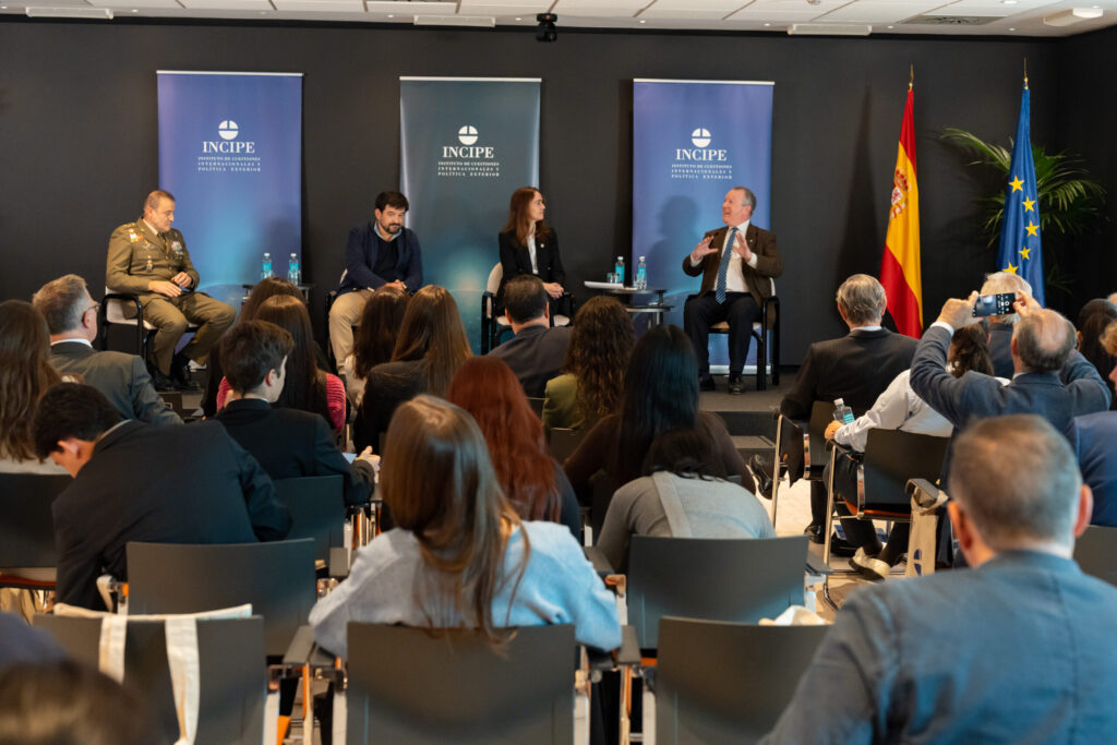In this conference, we had the opportunity to organize two roundtables. The first, titled The Current Situation in the Palestinian Territories and Israel, was moderated by Vicente Garrido, Director General of INCIPE. Participants included Óscar Millajo, international news journalist for TVE and former Middle East correspondent; Miguel de la Fuente, international photojournalist and recipient of the ‘Cirilo Rodríguez’ award for foreign correspondents (2023); and Colonel José Ignacio Castro, an associate analyst at the Spanish Institute for Strategic Studies (IEEE) of the Ministry of Defense.