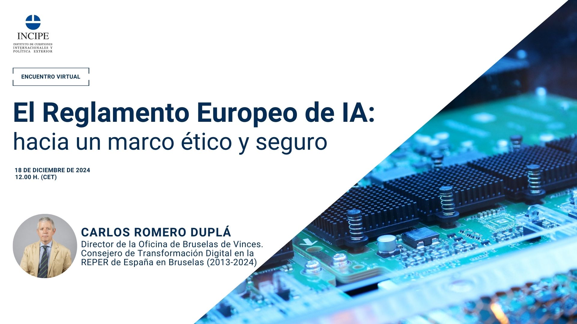 La sesión se desarrolló en español y congregó a una audiencia interesada en comprender los puntos claves de la normativa europea sobre Inteligencia Artificial. Para ello, contamos con la participación de Carlos Romero Duplá, consejero de Transformación Digital en la REPER de España en Bruselas (2013-2024). Durante la sesión, Carlos Romero presentó un análisis detallado del alcance del reciente Reglamento de Inteligencia Artificial (IA) de la Unión Europea.