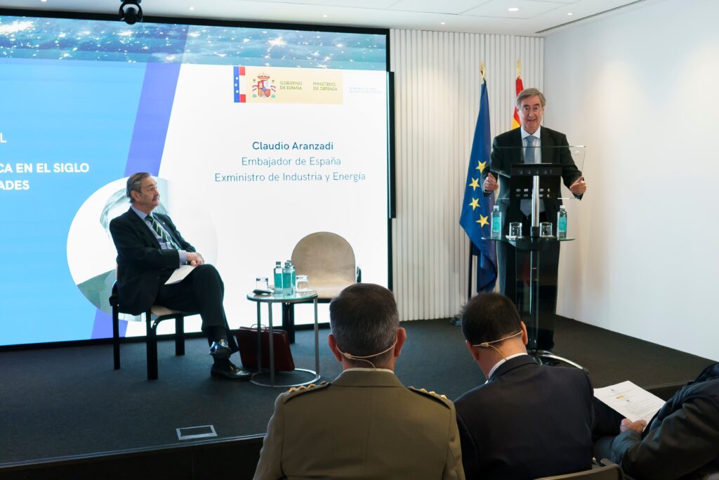 La conferencia inaugural fue impartida por el ministro Claudio Aranzadi, quien subrayó que la energía constituye hoy uno de los vectores centrales de la seguridad internacional. Tras recordar el impacto del reciente ciclo de inestabilidad global, conflictos en Europa y Oriente Medio, debilitamiento del multilateralismo y tensiones tecnológicas, destacó cómo la transición energética y la lucha contra el cambio climático añaden nuevas presiones sobre los sistemas productivos y sobre la política exterior de los Estados.