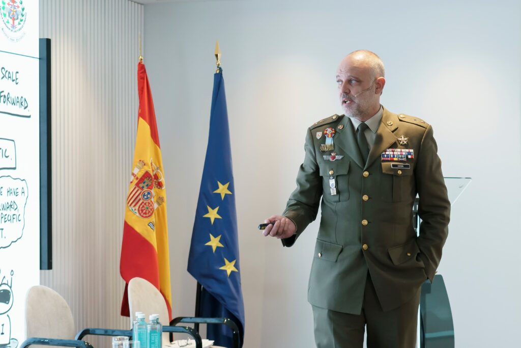 Moderada por el CN Eduardo Matres, jefe del área de análisis geopolítico de la DICOES, la segunda mesa contó con las intervenciones de Sonia Velázquez, directora del gabinete de la Secretaría General para el Reto Demográfico (MITECO), del Col. Pablo Ahedo y de Fernando Maravall, exdirector general de CEPSA y exsecretario general del Ministerio de Industria y Energía.
